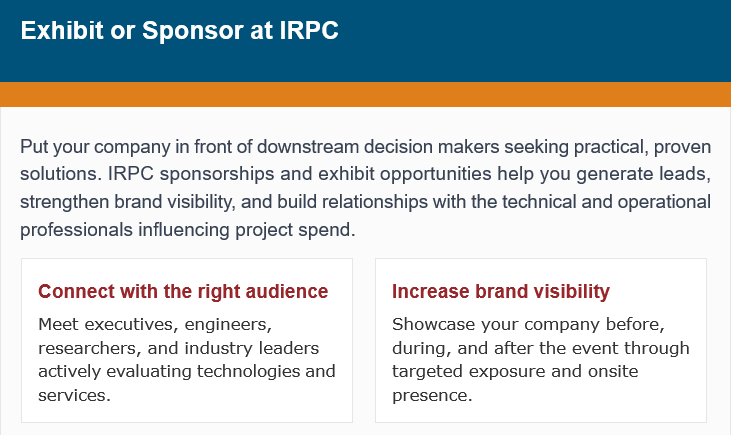 Hosted by Hydrocarbon Processing, IRPC is the premier global forum for applied innovation in refining and petrochemicals. Over two focused days, industry leaders gather to exchange insights, solve complex processing problems, and explore emerging technologies in: